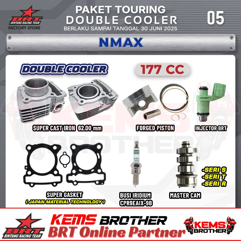 Blok Bore Up 177 CC Double Cooler BRT - Paket Touring 5 - NMAX, Aerox, Lexy - Original BRT Blok, Piston, Injektor, Nokenas, Busi