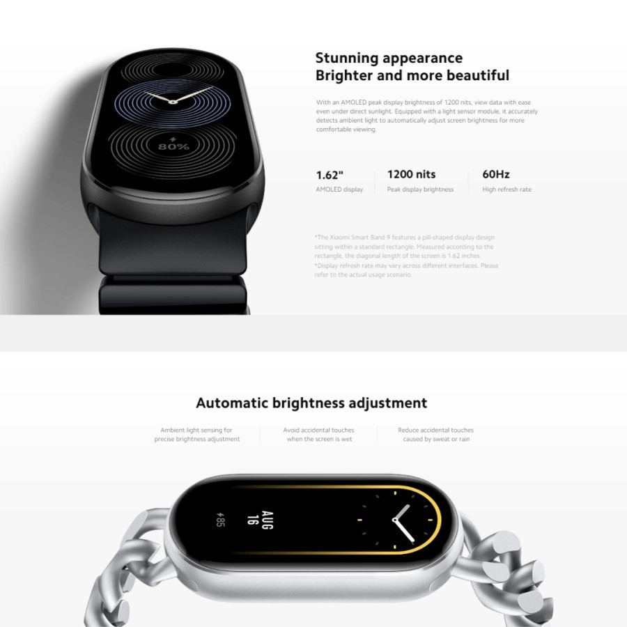 Xiaomi Smart Band 9 Amoled 1.62" 60Hz Jam Tangan 233Mah Up To 21 Days Mi Band 9 Jam Tangan Pintar