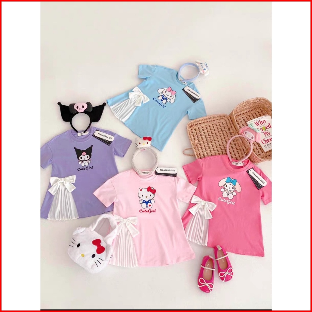 Kidsfo-67 Dress Gaun Casual Anak Perempuan Sanrio Kaos Lembut