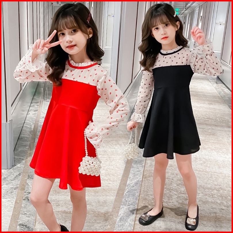 Kidsfo-3 Dress Gaun Baju Anak Perempuan Simple Korea Fashion Transparent Love