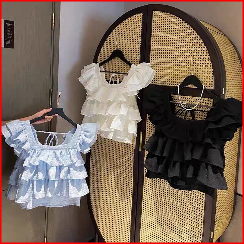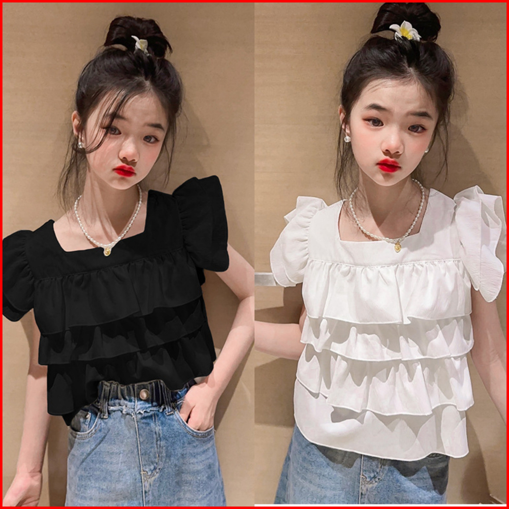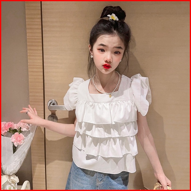 Kidsfo-12 Kaos Tshirt Atasan Anak Cewek Lengan Pendek Blouse Ruffle 3 Layer Sabrina