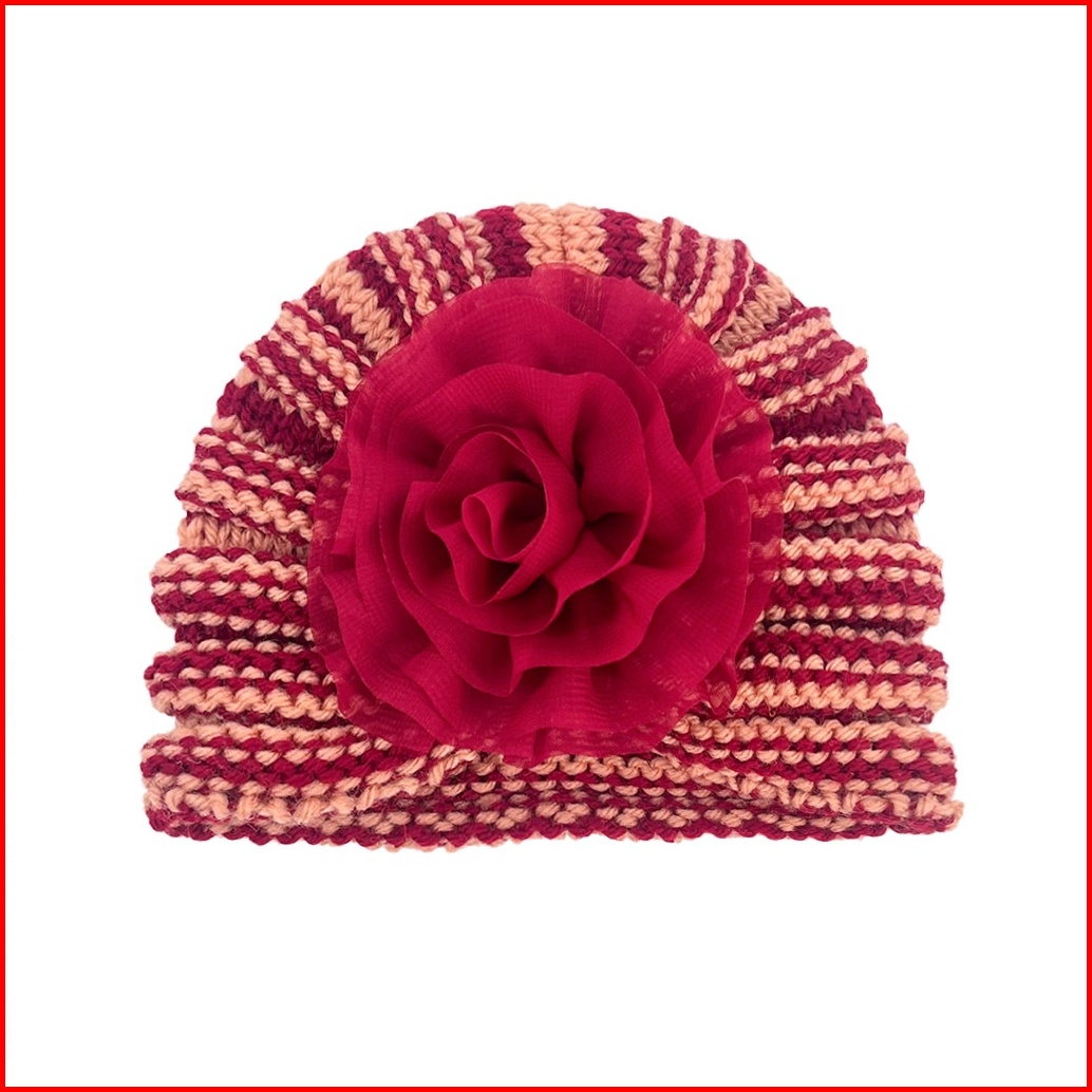 Kidsfo-6 Topi Turban Anak Bayi Perempuan Rajut Bunga Roses