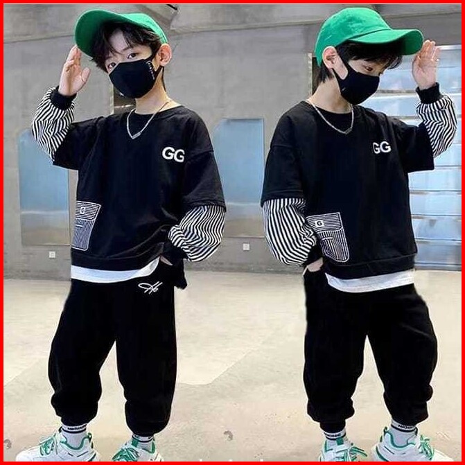 Kidsfo-1 Setelan Set Anak Laki Cowok Abg Teenager Lengan Celana Panjang Style Santai