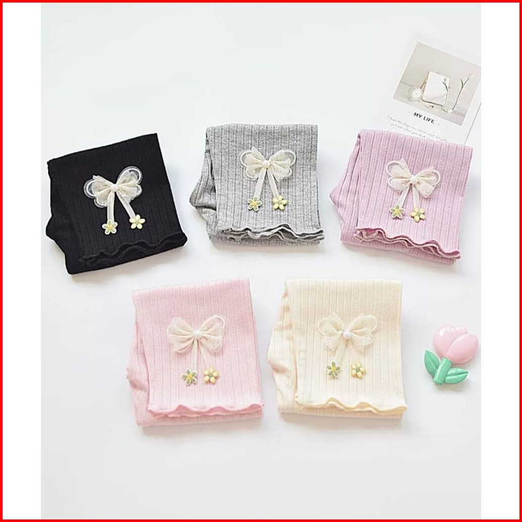 Kidsfo-11 Legging Anak Perempuan Katun Fashion Korea Hiasan Bunga Lulu