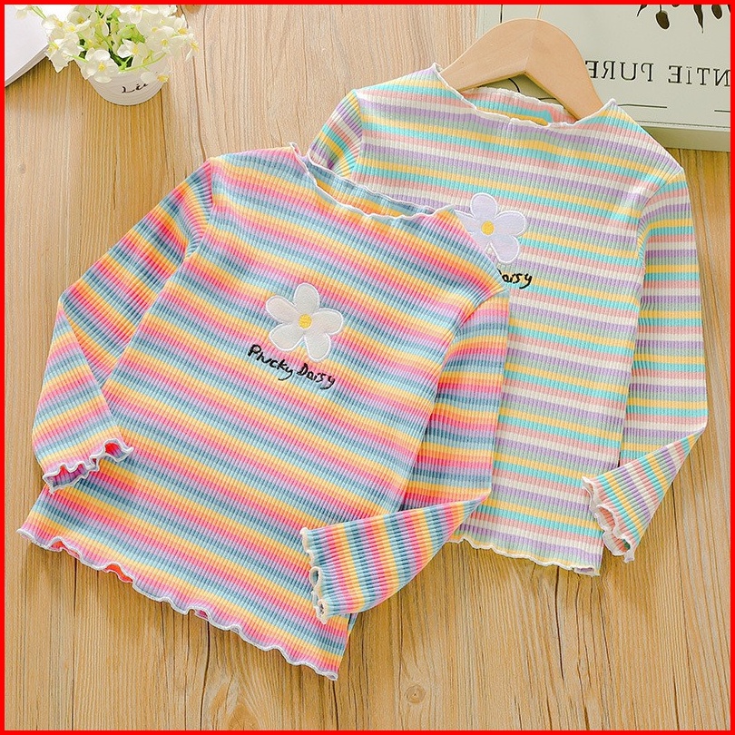 Kidsfo-5 Kaos Tshirt Atasan Anak Cewek Lengan Panjang Bordiran Daisy