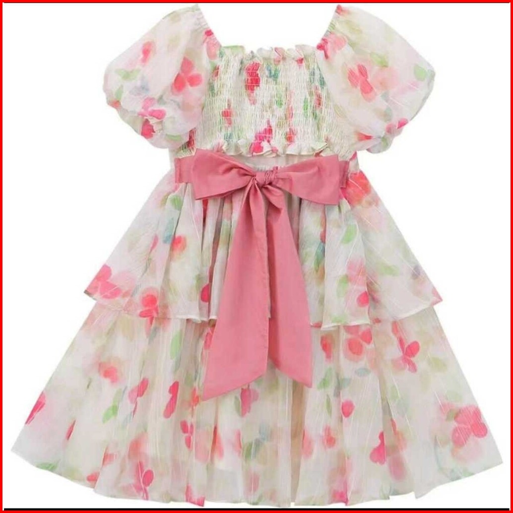 Kidsfo-83 Dress Anak Perempuan Gaun Pesta Sifon Floral Bunga Ruffle Alure