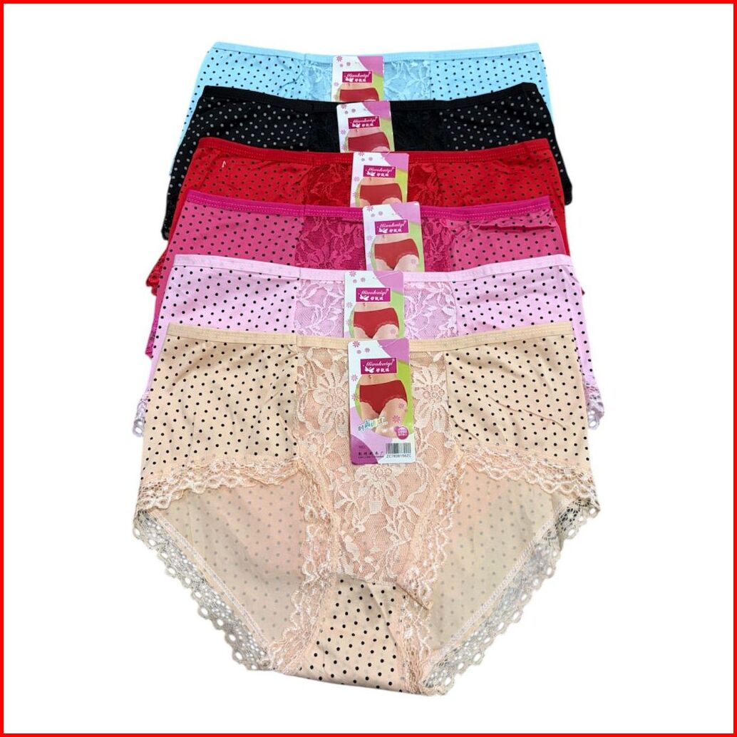 6 12 Pcs Celana Dalam Wanita Motif Polkadot Renda Paha Miaokaiqi 3368