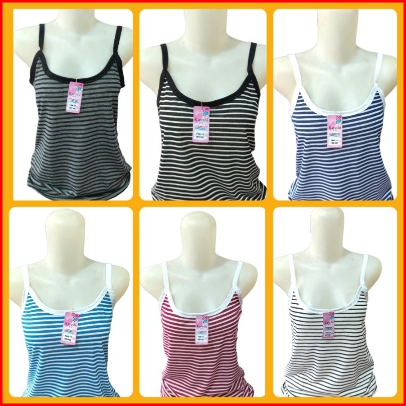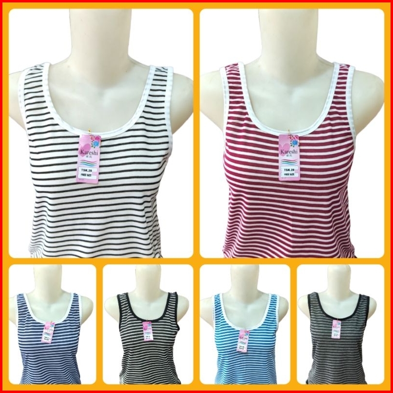 6 Pcs Tengtop Singlet Atasan Dewasa Salur Kareshi