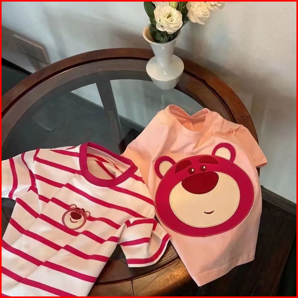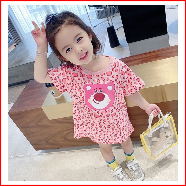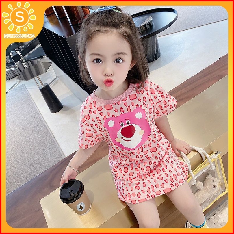 Sunny.lucas 1-8 Tahun Kaos Pink Bear Perempuan Dress Kaos Bayi Cewek Pakaian Baju Anak Bahan Halus Baju Anak Perempuan