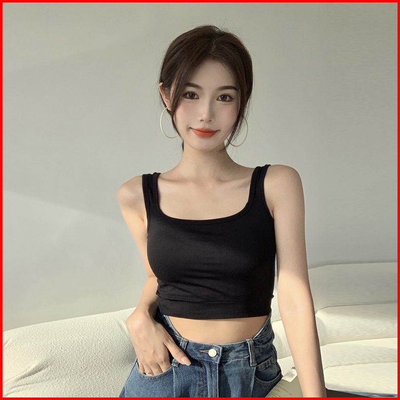 Yooyi Tank Top Bra Wanita Singlet Perempuan Crop Atasan Tanktop Basic Korean Dengan Tangtop With Cup Bahan Elastis Premi