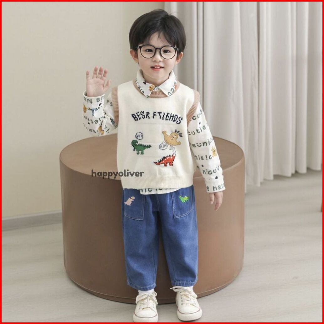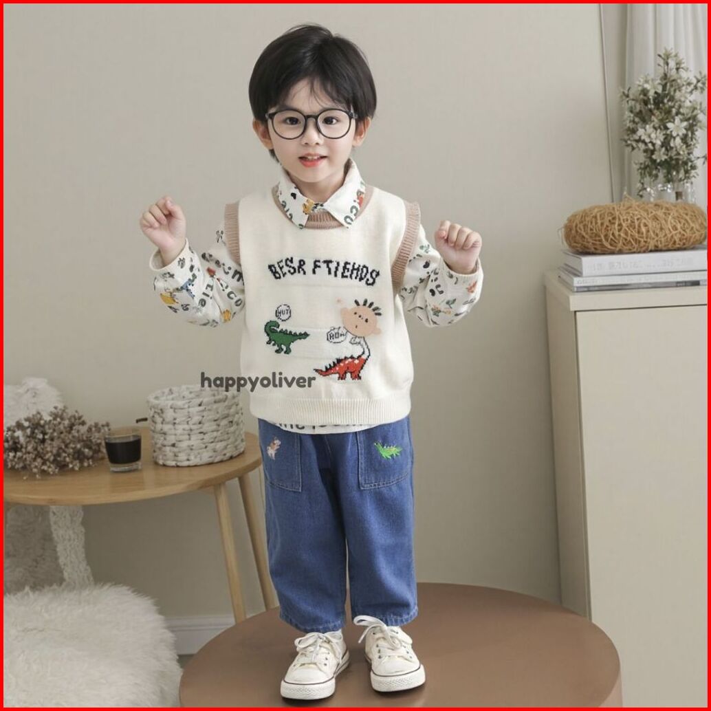 Promo 1.1 Happyoliver Set De Dinosaurus Ebv Setelan 3in1 Kemeja Bayi Anak Laki-laki Lengan Panjang Berkualitas