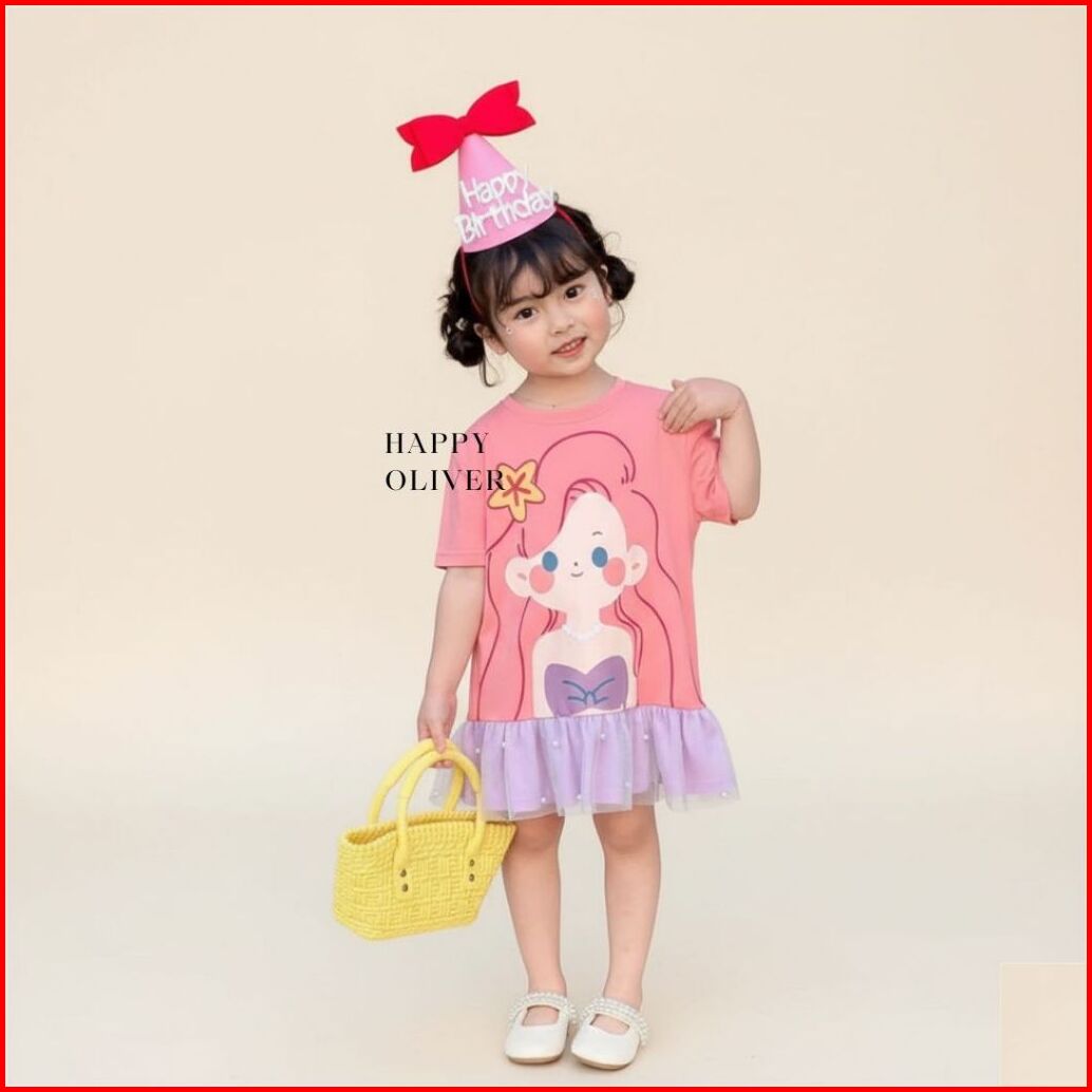 Happyoliver Dress Ariel Day Mn 1-9 Tahun Dress Princess Lucu Anak Perempuan Kartun Putri Seri Ruffle