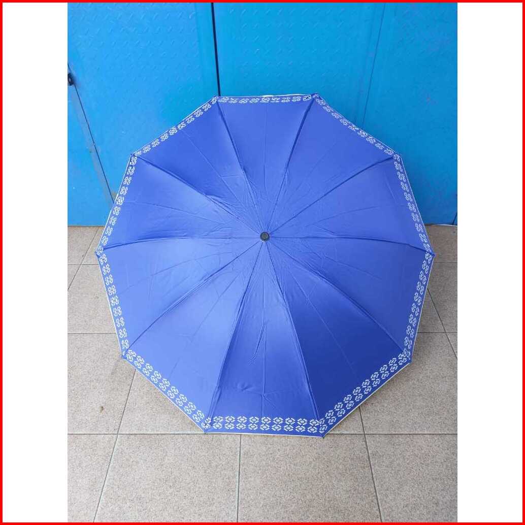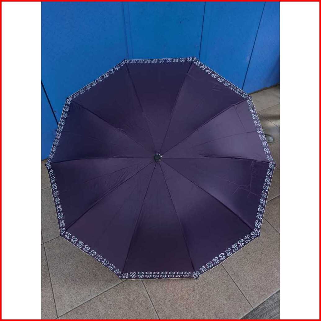 Payung Lipat 4 Polos List Batik Dalam Hitam Metalic Elegant Rangka 10 Jari Anti Uv