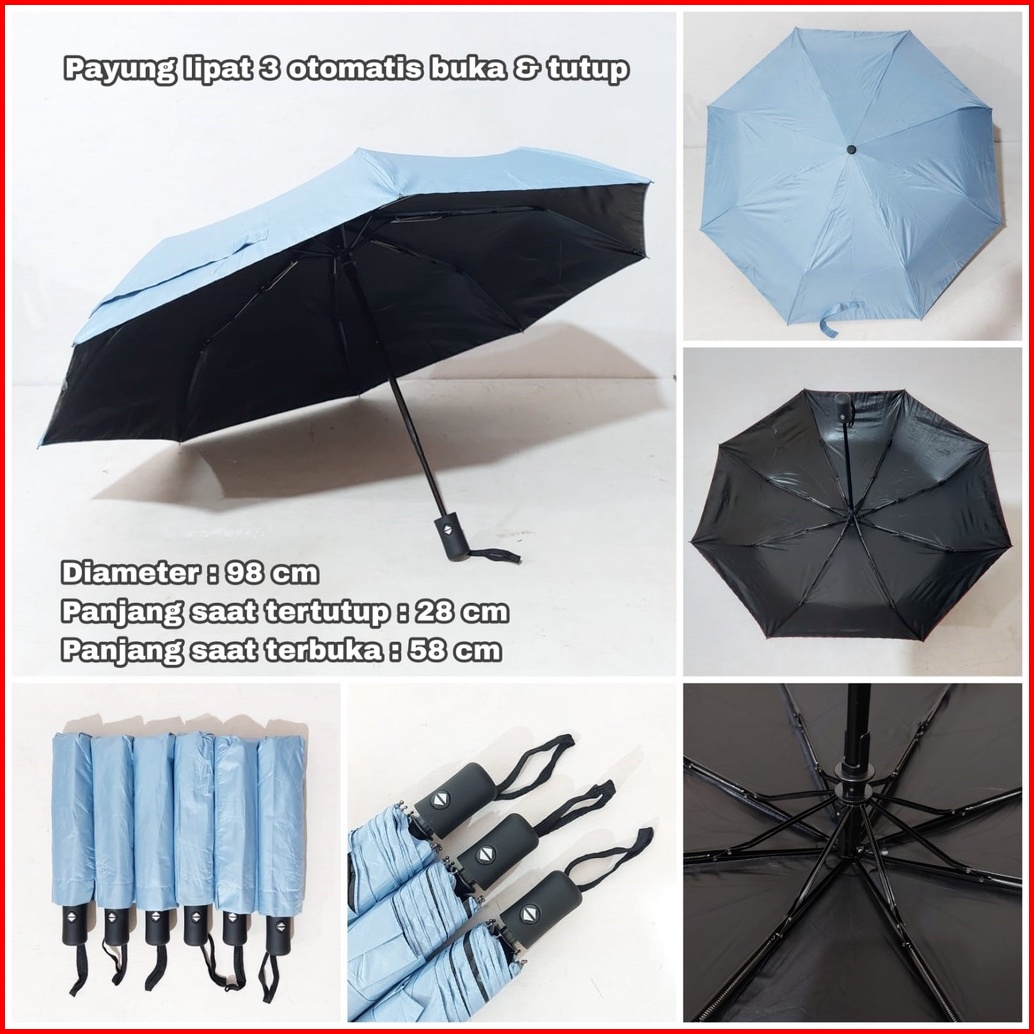 Payung Lipat Otomatis Buka Warna Pink Dan Biru Soft Payung Lipat Viral Tahan Angin