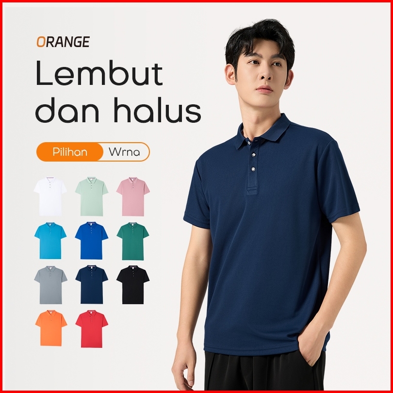 Orange Kaos Kerah Polo Shirt Polos Pria Premium Pakaian Cowok Kerah Fahsion Baju Lengan Pendek