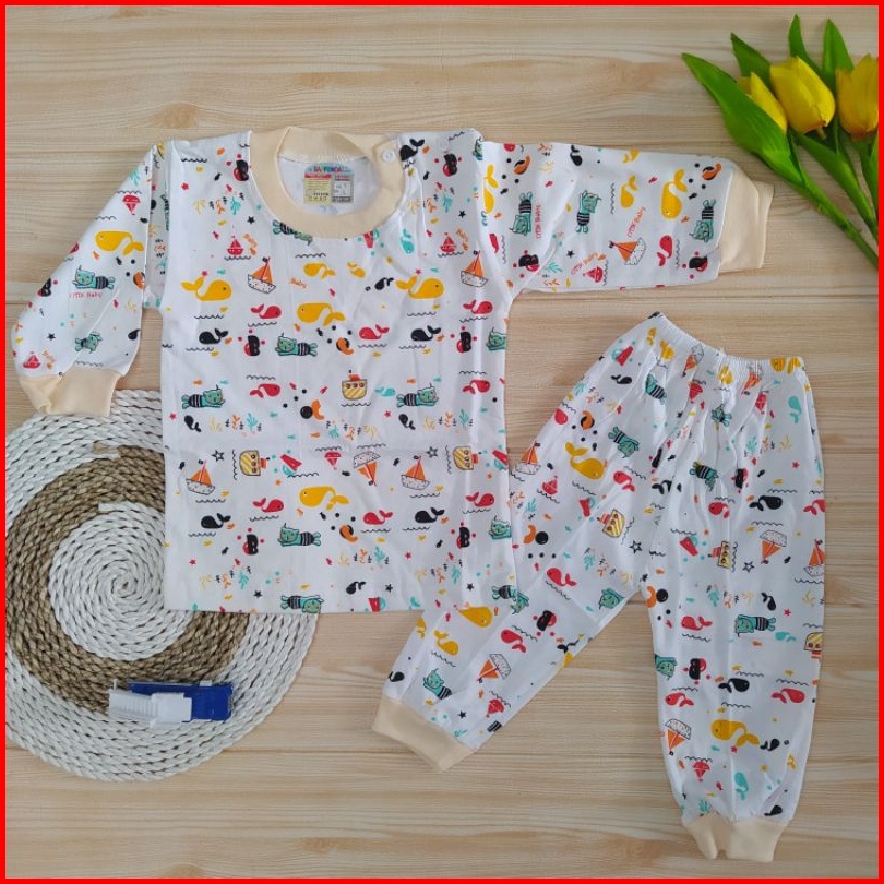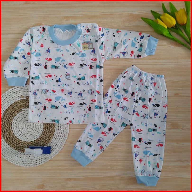 Setelan Baju Bayi Usia 3-12 Bulan Lengan Panjang Laki Baju Kancing Pundak Setelan Baju Saffenda