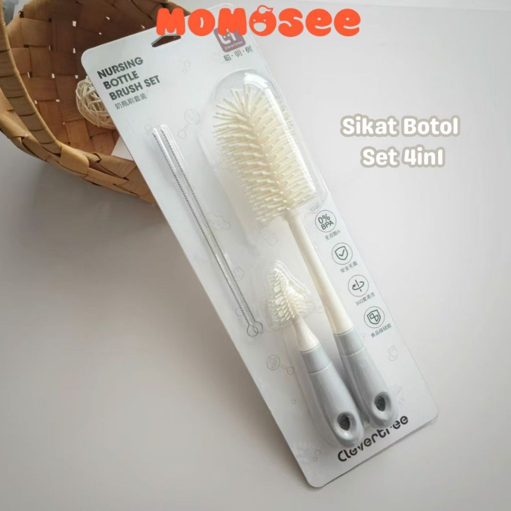 Momosee Set Sikat Botol Dot Selang Bayi 4in1 Pembersih Botol Susu Silikon Lembut BPA Free XH12