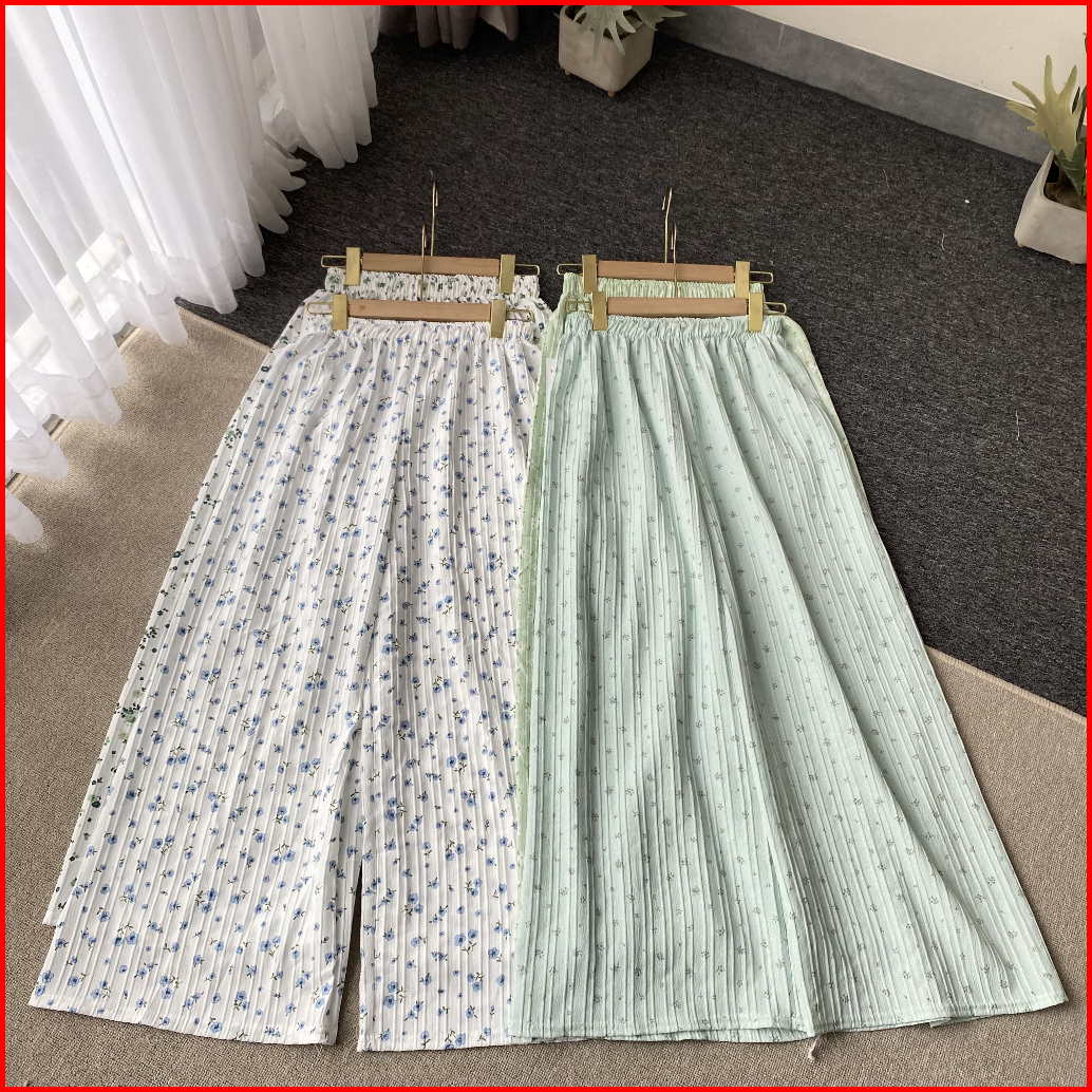 Celana Wanita Kulot Yoryu Motif - Celana Panjang Haighwaist Elastic Waist Floral