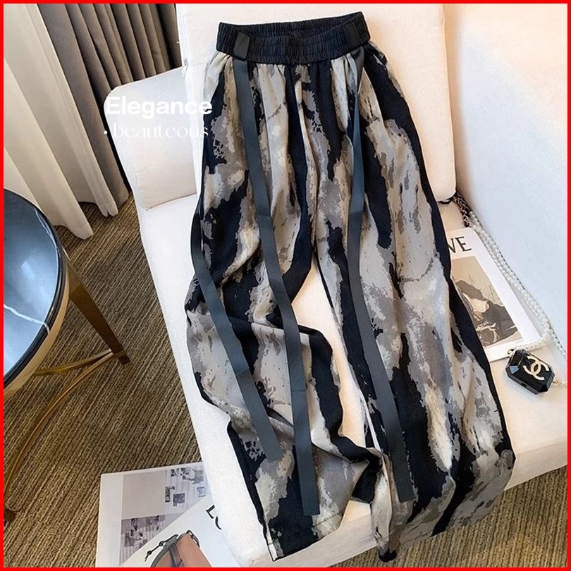 Ready Tie Dyed Wide Leg Pants Celana High Waist Kulot Panjang Korean Style Motif Celana Wanita