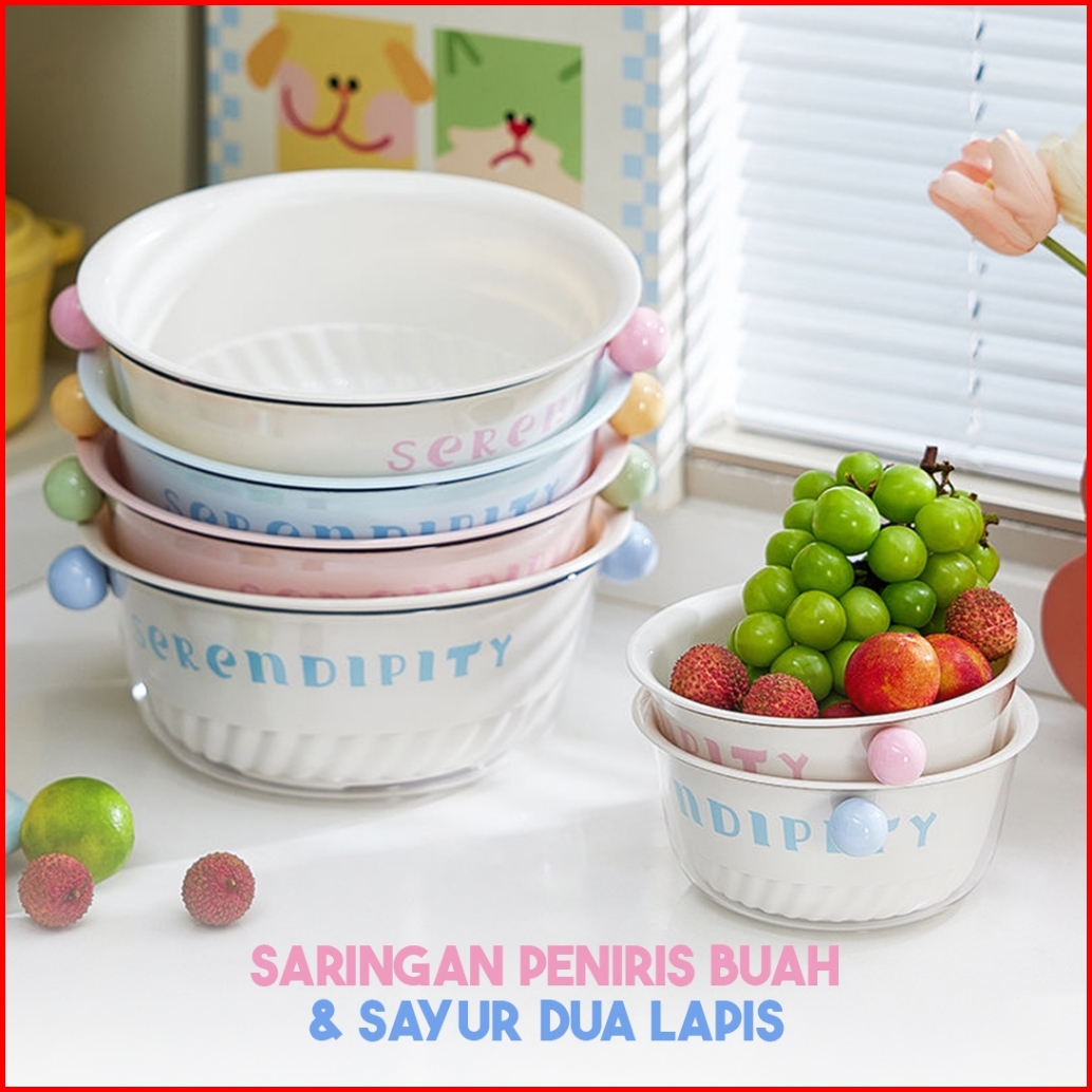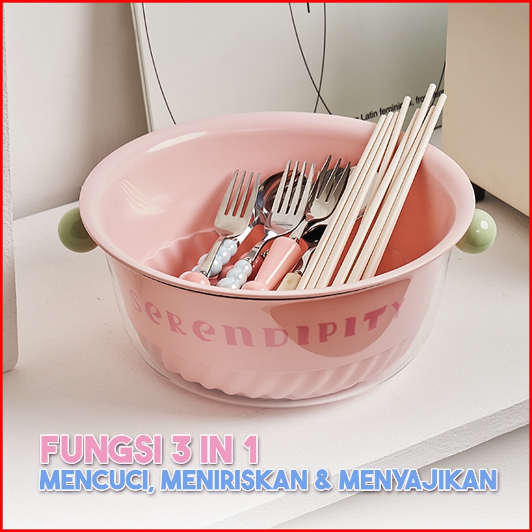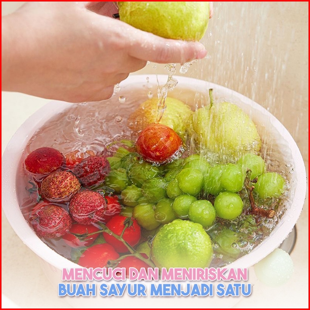 Living Mall Wadah Cuci Buah Sayur E89 Wadah Saji Pencuci Peniris Saringan Cuci Buah Sayur Serbaguna