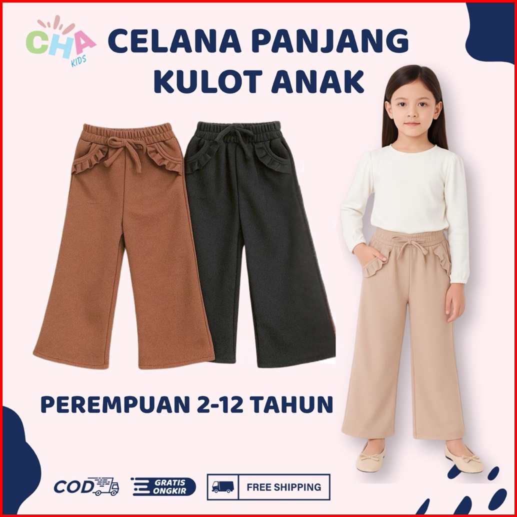 Celana Anak Perempuan Kulot Panjang Usia 2-12 Tahun Bahan Knit Japan Melar Premium