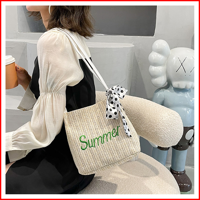 Bao034 Tas Anyaman Bunga Renda Segar Dan Sederhana Tas Pantai Tas Jinjing Bahu Gaya Barat Tas Besar Tas Bahu Tas Ibu Tas