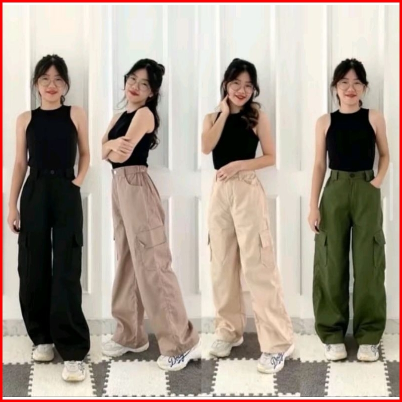 Celana Kulot Kargo Anak Remaja Perempuan - Celana Highwaist Panjang Anak Perempuan