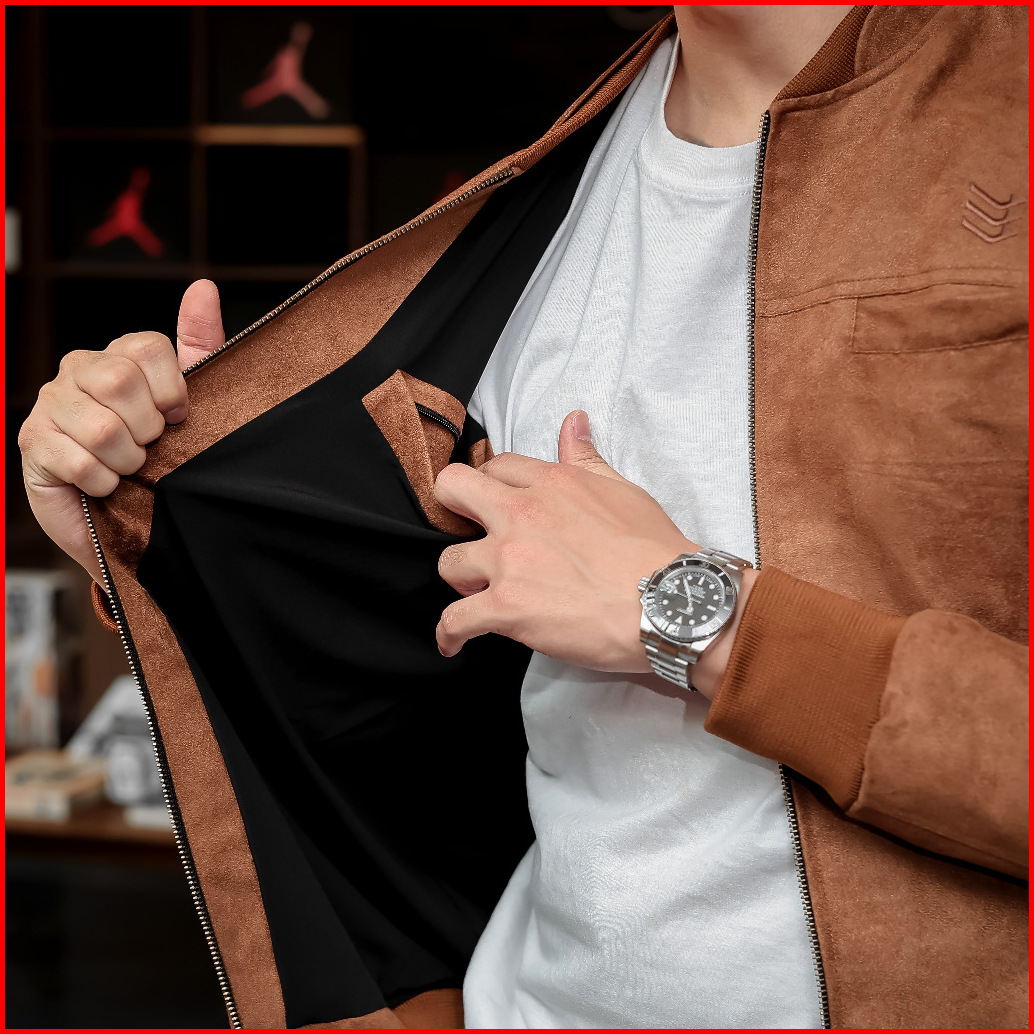 Mamens X Delibra Jaket Bomber Suede Pria Slimfit