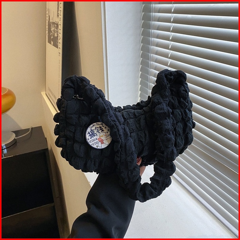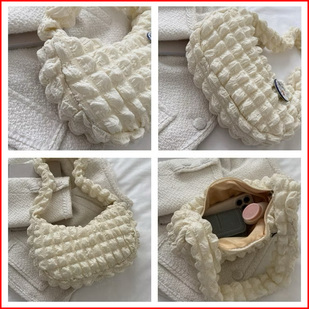 Tas Sling Bag Tas Selempang Puffy Bag Tas Wanita Aesthetic - Desain Cloud Bag Lipit Warna Solid Tas Carlin Bag Korea Imp