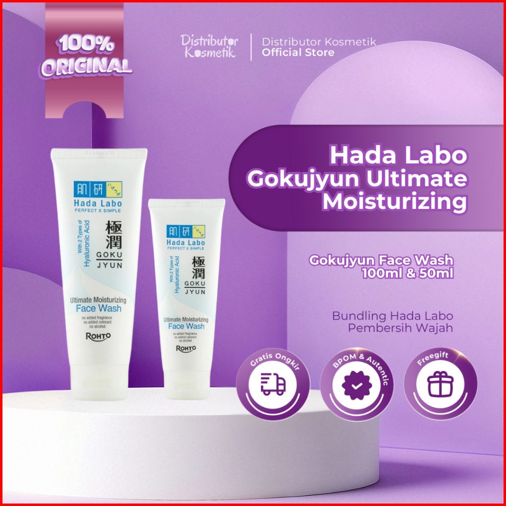 Agen Resmi Bundling Hada Labo Gokujyun Ultimate Moist Face Wash 100ml 50ml - Sabun Cuci Muka Melembabkan Kulit Wajah Ori
