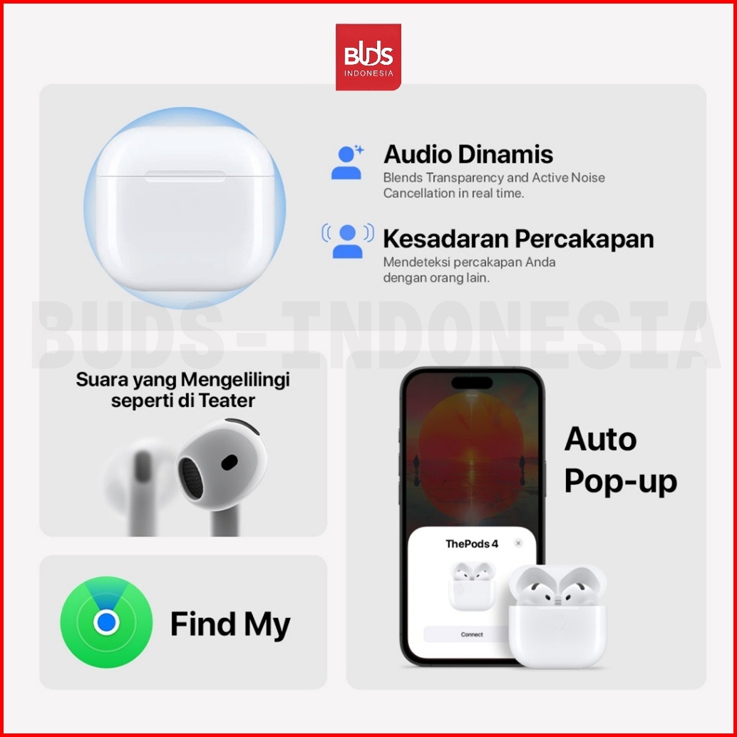 Buds Tws Pods Gen4 Earphone Bluetooth Headset Bluetooth Wireless Earbuds Super Bass Dengan Audio Spatial Dolby Atmos Sur