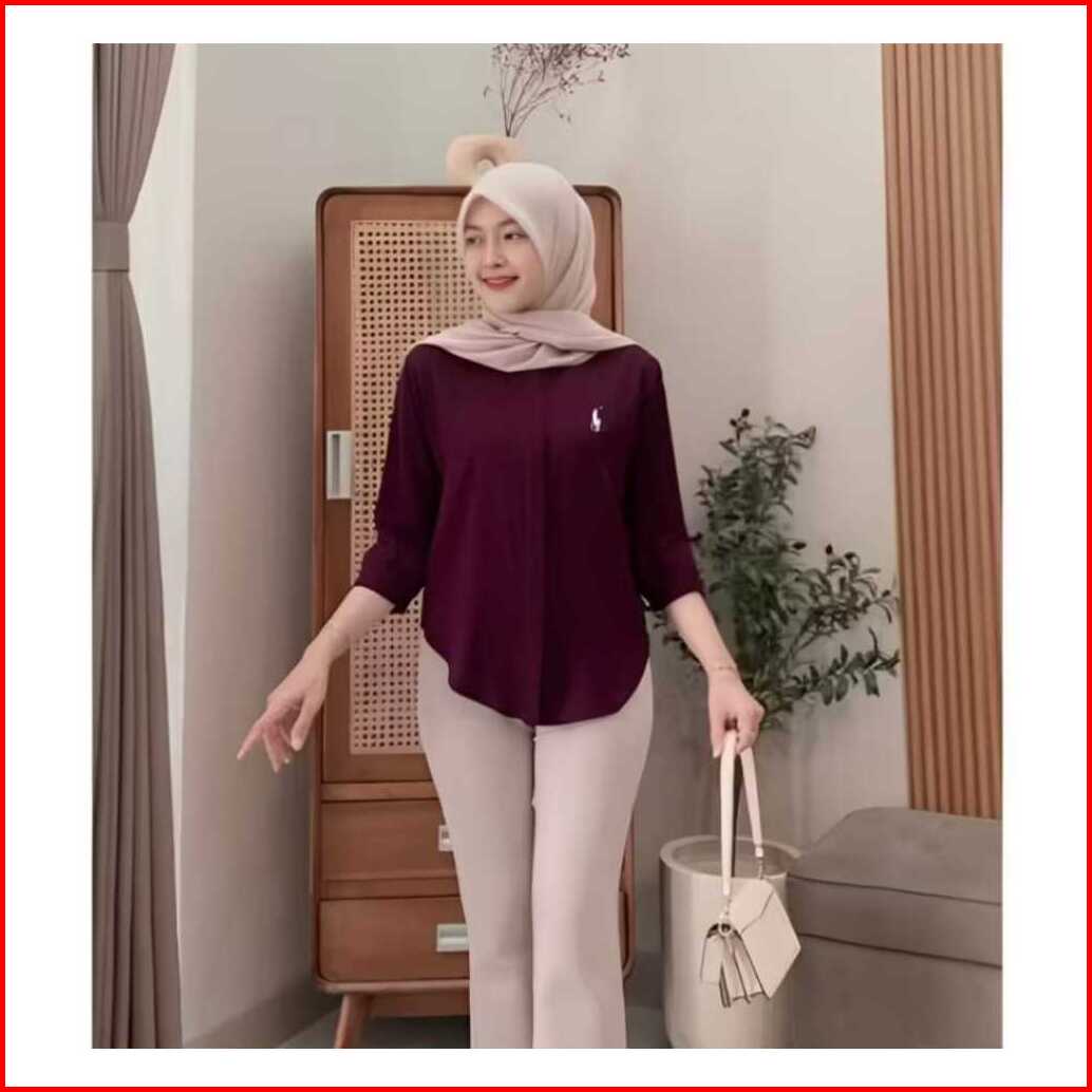 Kemeja Bordir Logo Atasan Wanita Kekinian Oversize