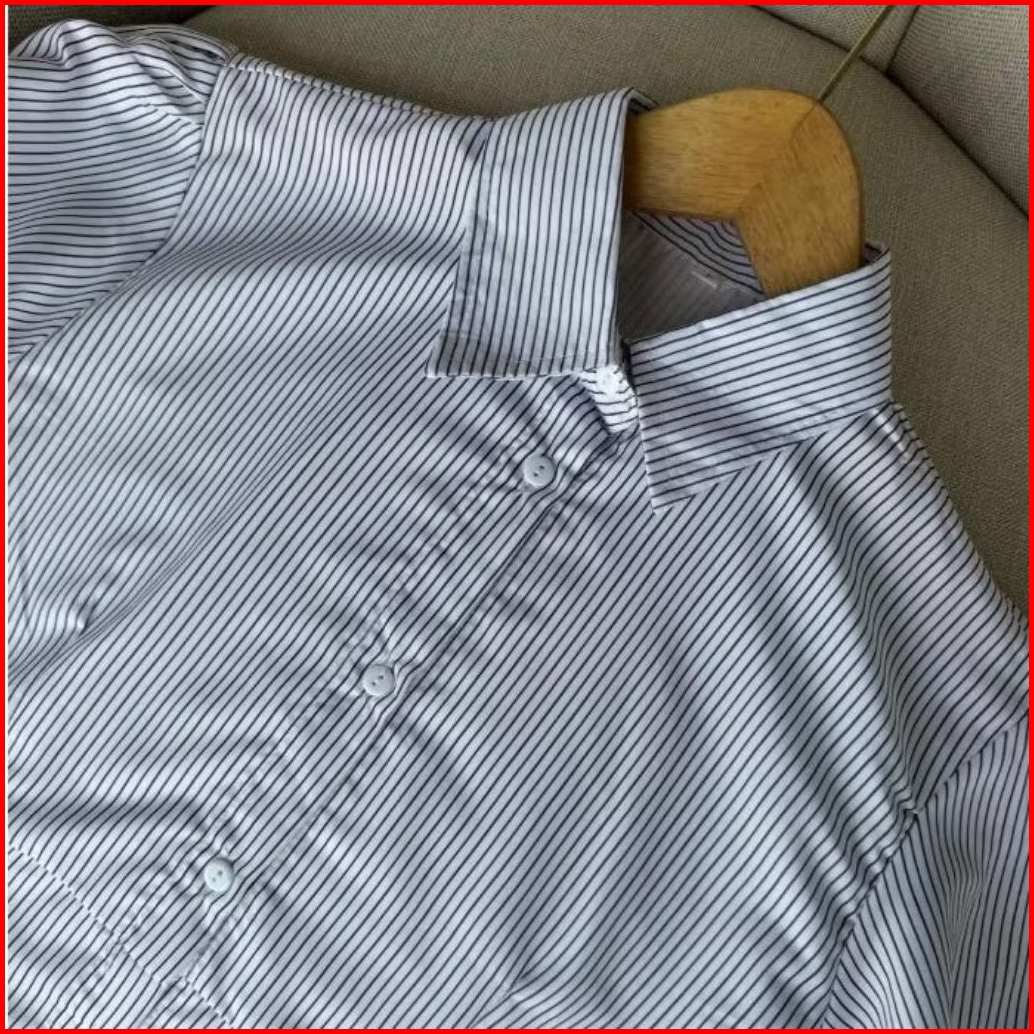 Kemeja Strip Rempel Fit Body Wanita Casual Daily Formal - Kemeja Stripe Rempel Korean Look Fitted