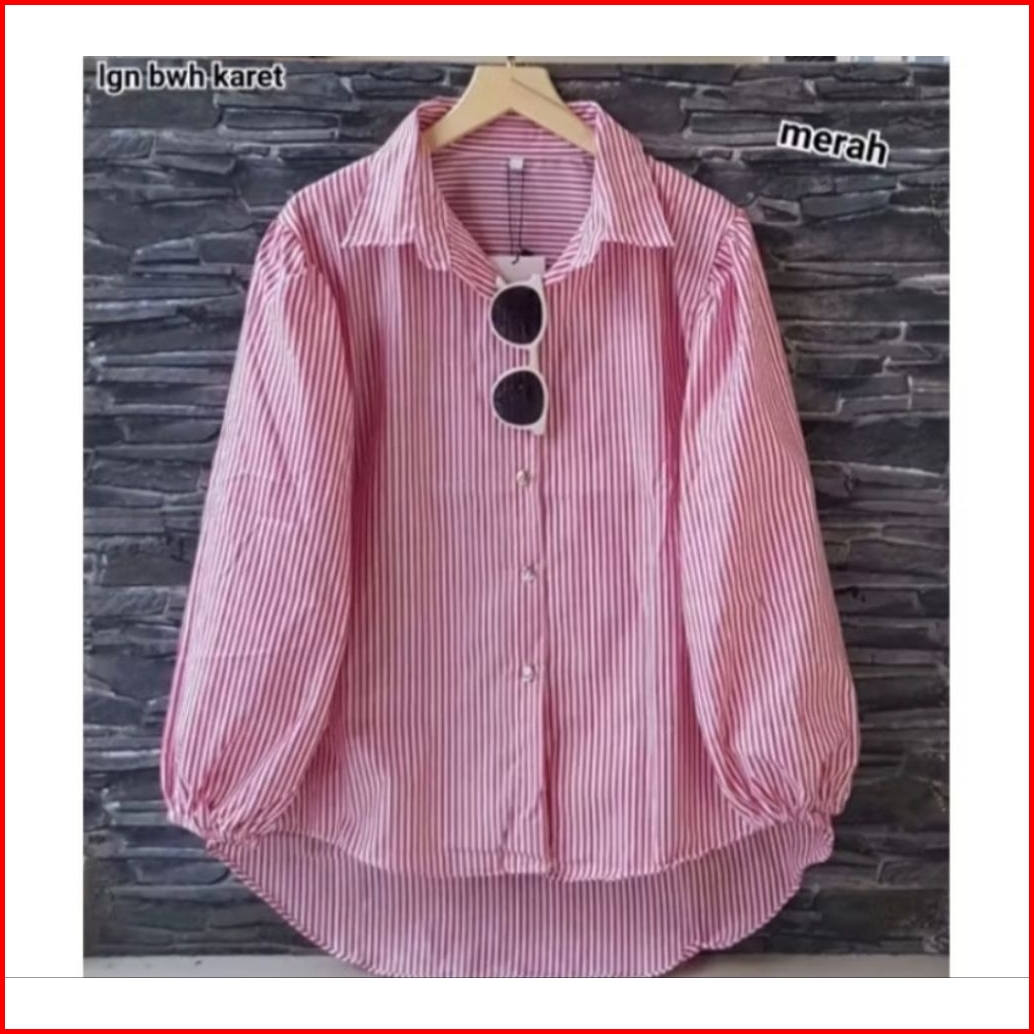 Kemeja Salur Tangan Karet Atasan Wanita Terbaru