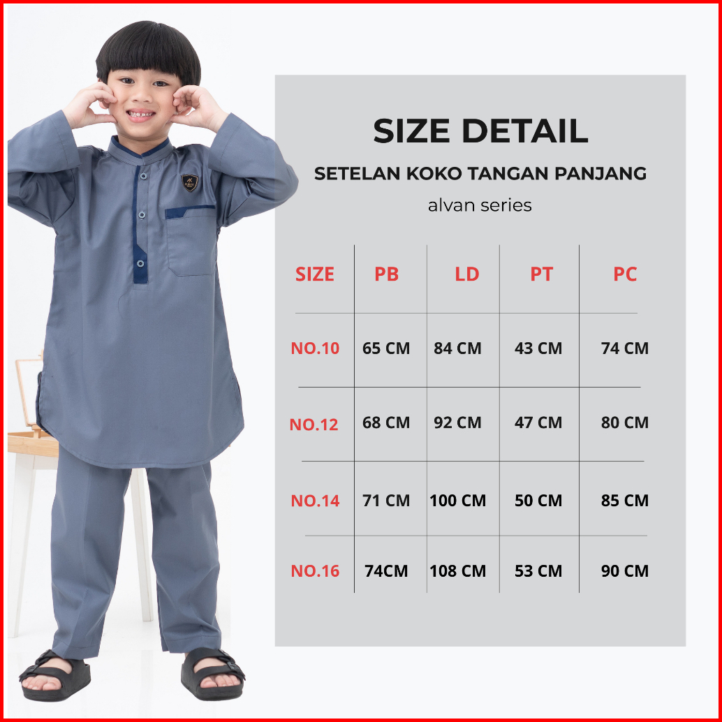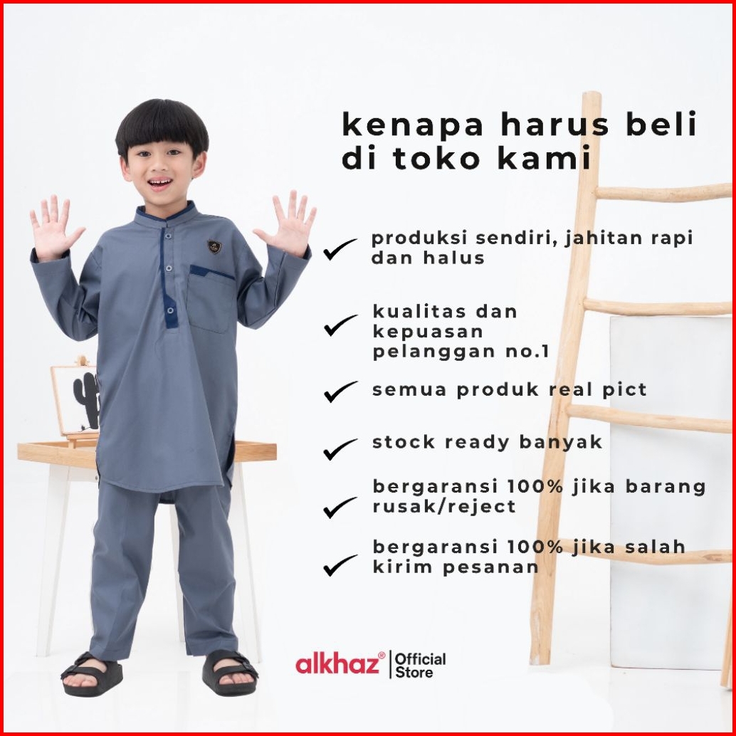 Alkhaz Setelan Baju Koko Anak Laki-laki Lengan Panjang Usia 9-16 Tahun Alvan Series