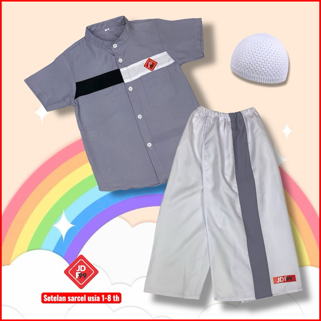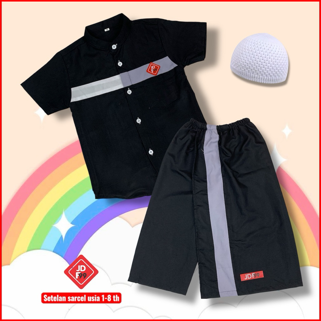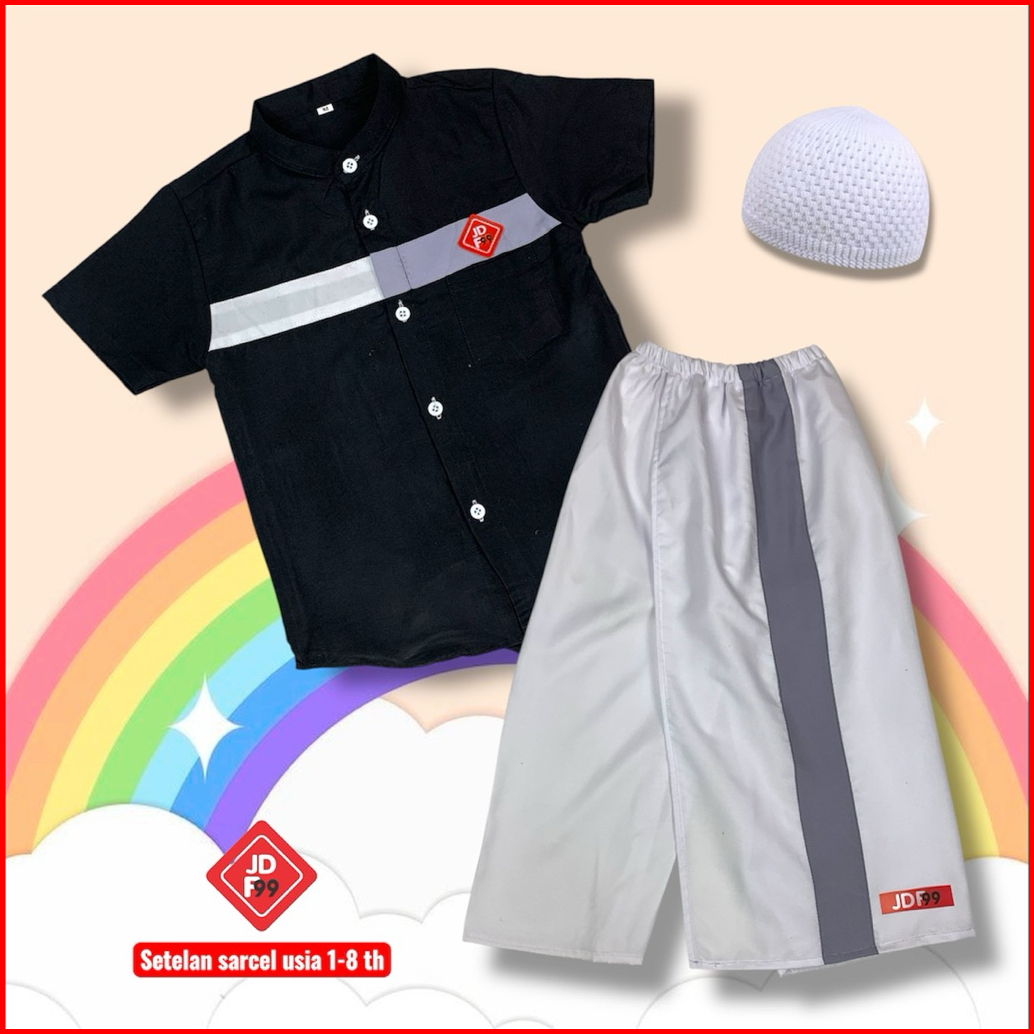 Jdf Kids Terbaru Baju Koko Set Sarcel Anak Usia 2-8tahun Sarung Celana Baju Koko Peci Ukuran M L Xl Xxl Hitam Putih Abu