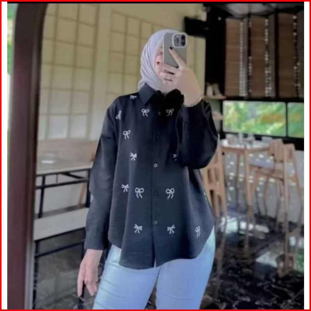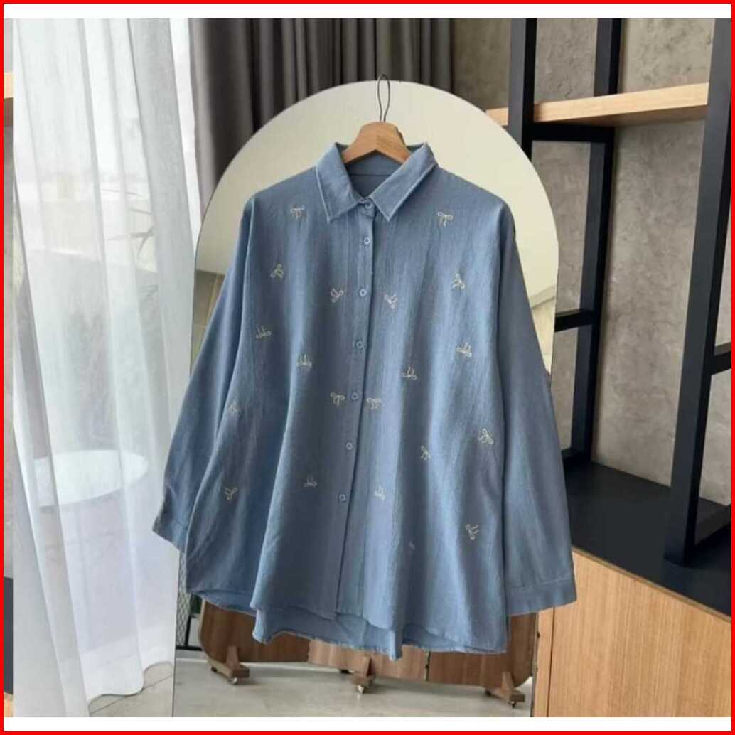 Praja Kemeja Wanita Bordir Pita Kecil Atasan Wanita Kekinian