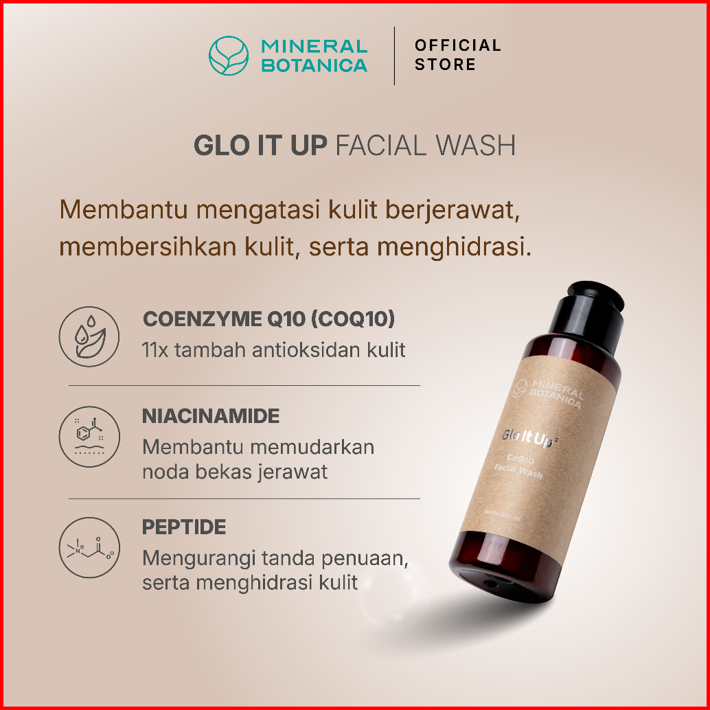Mineral Botanica Glo It Up Coq10 Facial Wash 100ml Antioksidan Anti Aging Mencerahkan