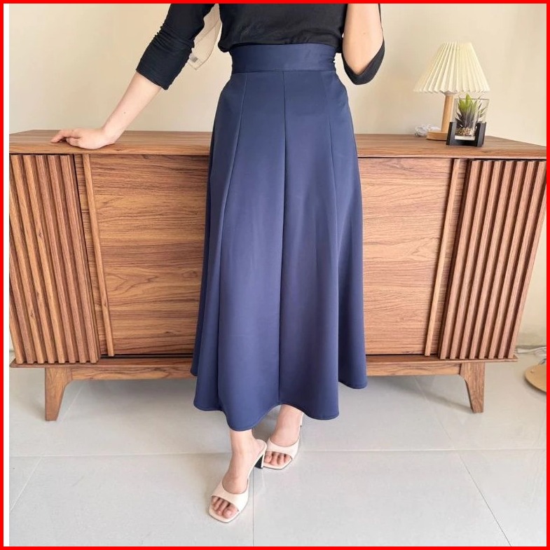 Haruka Skirt - Korean Loose Maxi Skirt Rok Wanita Anti Kusut Polyester - Rok Flare Wanita - Rok Basik Polos - Maxi Skirt