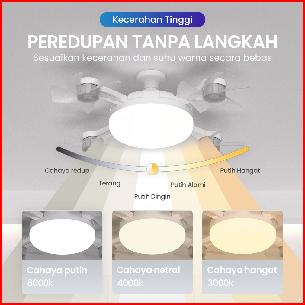 Han River 4heads Kipas Angin Plafon 60w 2in1 Lampu Kipas Angin Led E27 Multifungsi Dengan Peredupan Remote Control Dapat
