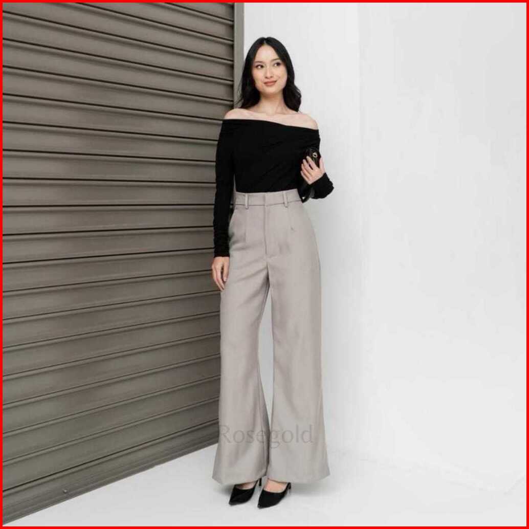 Etta Pants Highwaist Flare Bahan Adem Loose Cut Bray Korean Style