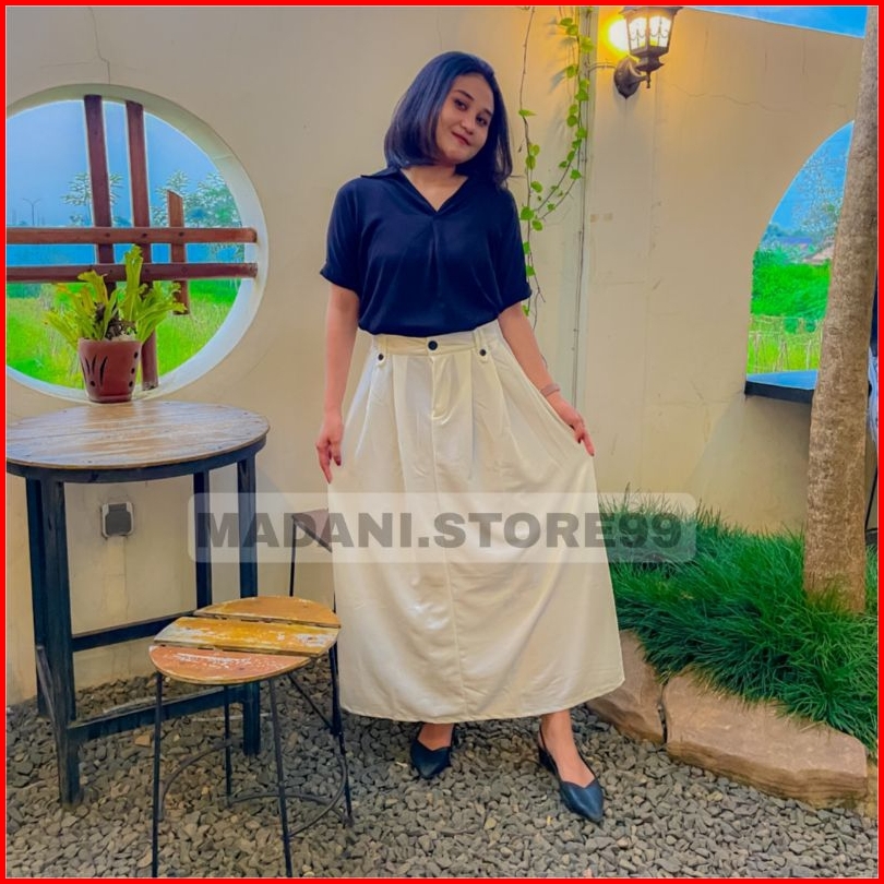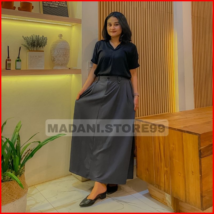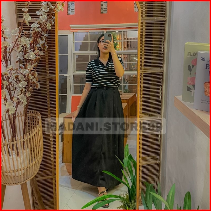 Mdn - Rok Panjang Span Rajut Knit Premium Wanita Rok Flare Wanita Kekinian Rok Anti Kusut Knit