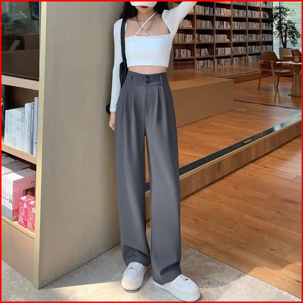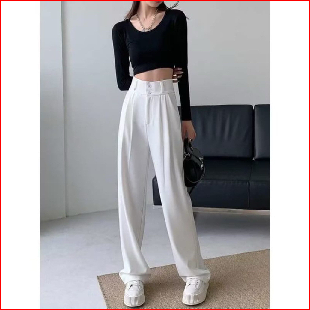 Celana Loose Pants Premium - Celana Kulot Anti Kusut - Celana Higwhaist Korean Style Double Kancing