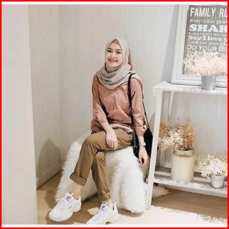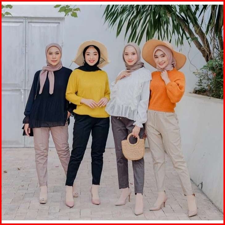 Chino Pants Wanita Pinggang Karet Slim Katun Grosir Baggy Pants