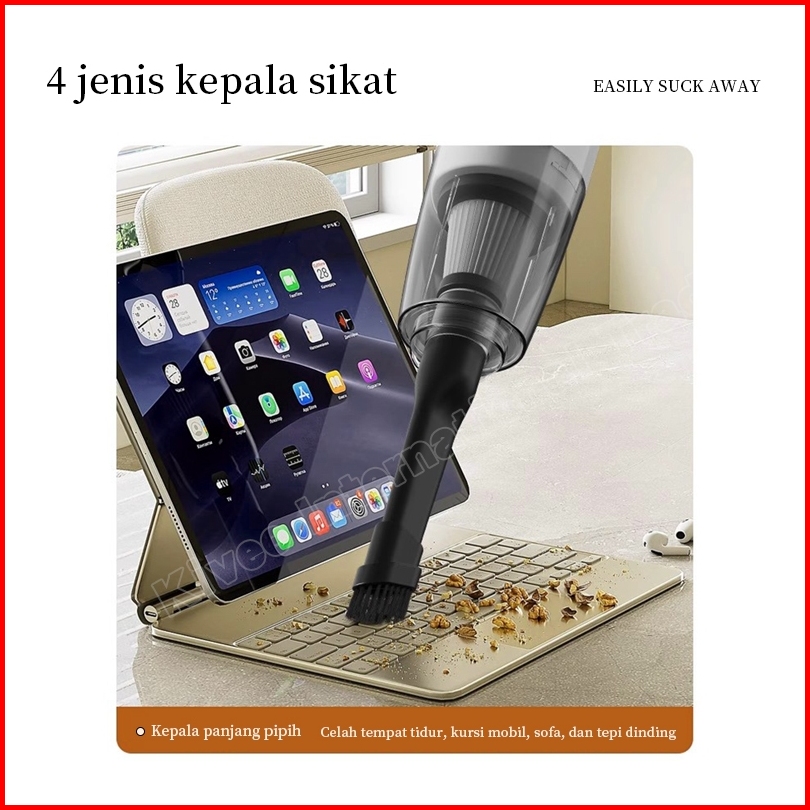 Saeris Vacuum Portable Nirkabel 30000pa Sunyi Rumah Tangan Mobil Dua Penyesuaian Kecepatan Angin