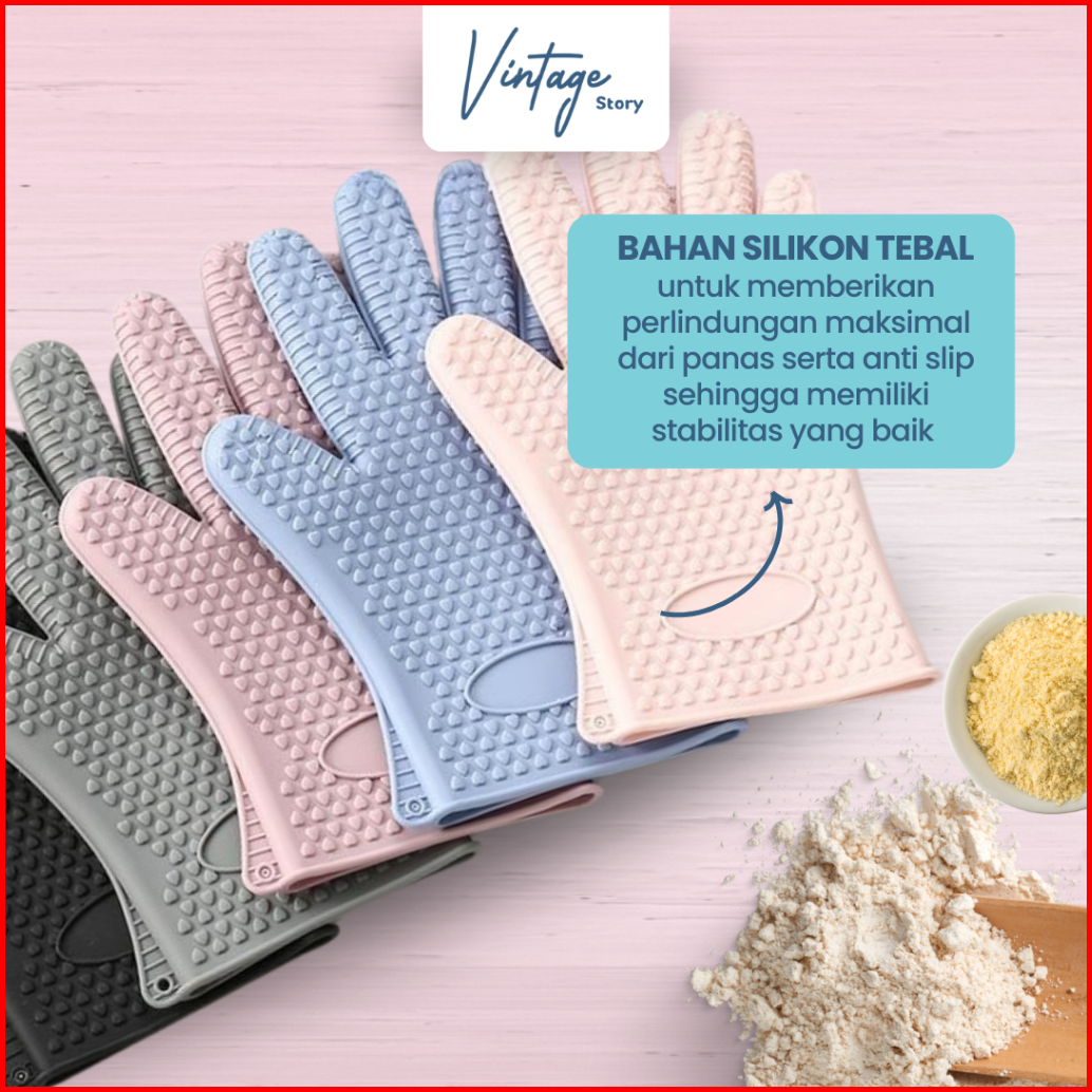 Sarung Tangan Oven Dapur Masak Silikon Tahan Panas 230 C Anti Slip