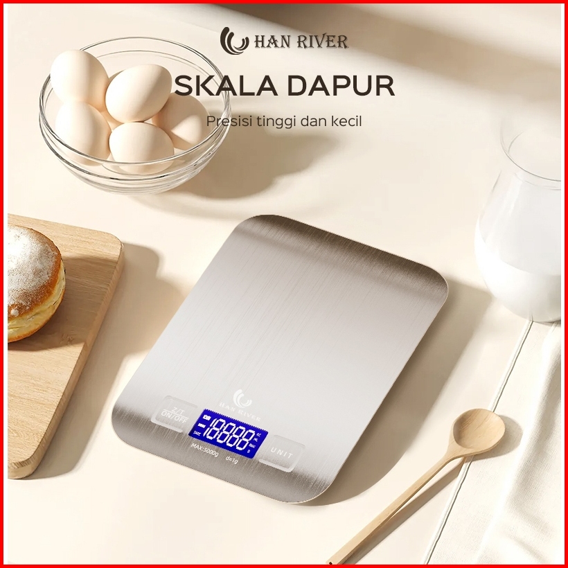 Han River Timbangan Digital Dapur 5kg Berbahan Stainless Steel Lcd Display