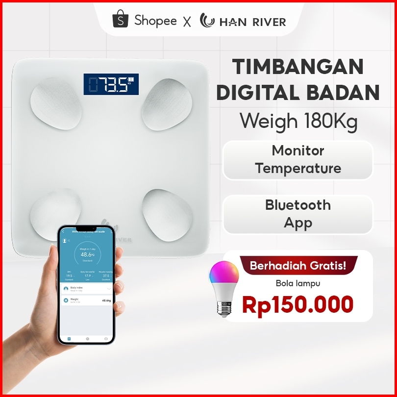 Han River Timbangan Badan Digital 180kg Smart Digital Body Scale With App Usb Charging