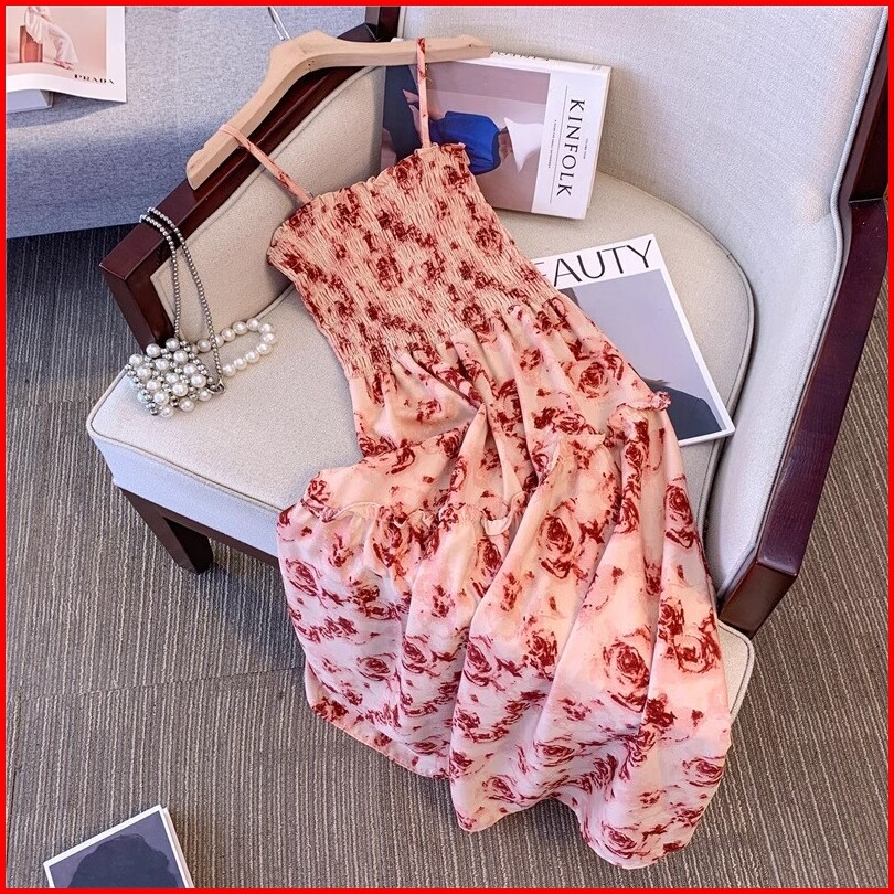 Boll.iddress Wanita Kekinian Dress Korean Style Midi Dress Pantai Rok Motif Bunga Long Dress Casual