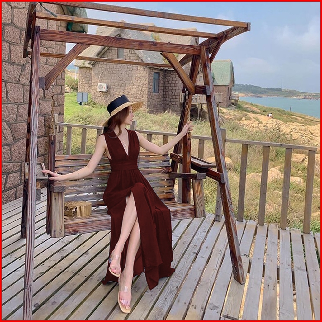 New Busy Dress Belah Baju Pantai Serut Belakang Korean Style Katun Premium D016 By Pusat Grosir